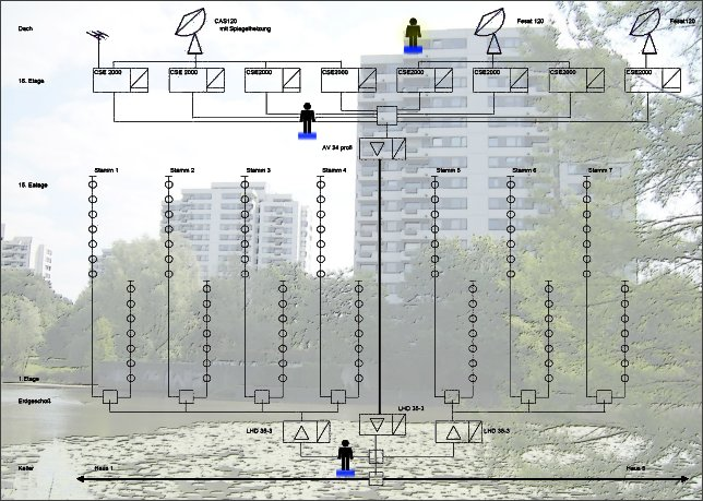 In drei Hochhäusern werden insgesamt über 300 Wohnungen mit zahlreichen analogen und digitalen Radio- und Fernsehprogrammen versorgt: