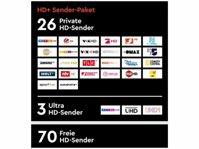 Mehr als tausend in- und ausländische TV- und Radioprogramme sind mittlerweile kostenfrei und zum Teil in HD-Qualität über Satelliten zu empfangen. Das SAT-Fernsehen beinhaltet zahlreiche deutsche Regionalprogramme und viele fremdsprachige Kanäle – nicht zu vergessen die über 100 Radiosender, die ebenfalls zu empfangen sind. Der digitale TV-Empfang via Satellit bietet daher die größte Programmvielfalt. Über den Satelliten ASTRA sowie eine kostenpflichtige Zugangskarte (HD+) empfangen Sie - zusätzlich zu den frei empfangbaren HD-Programmen - weitere unten angegebene Sender in HD-Qualität. Ohne diese Zugangskarte sind diese Sender lediglich in der Standard-Auflösung (SD) zu empfangen.