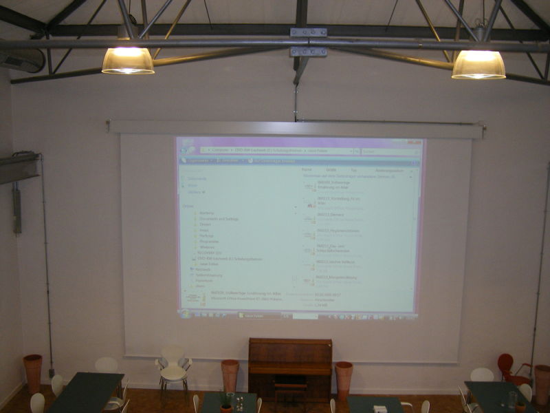 Diese Präsentationsmedien verknüpfen wir in der Regel mit hochwertigen (versenkbaren) Leinwänden der Firma Cinelux.